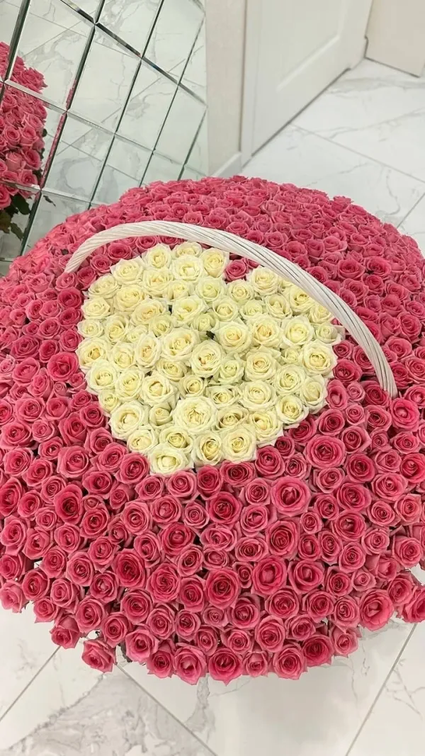 Большая корзина-сердечко с 501 розой №26