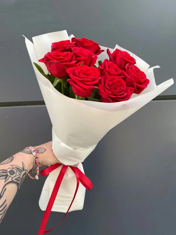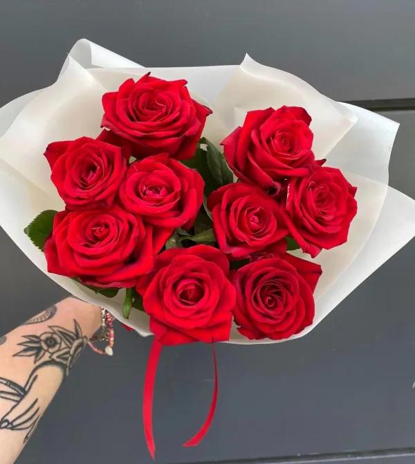 Букет из 9 классических сочных красных роз №6