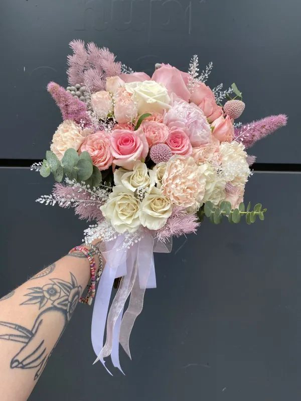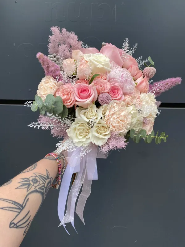 Свадебный букет невесты с диантусами, розами и пионом №8