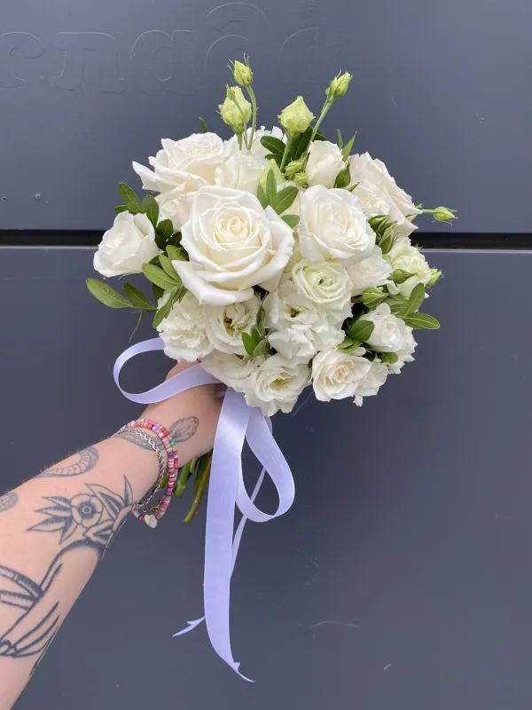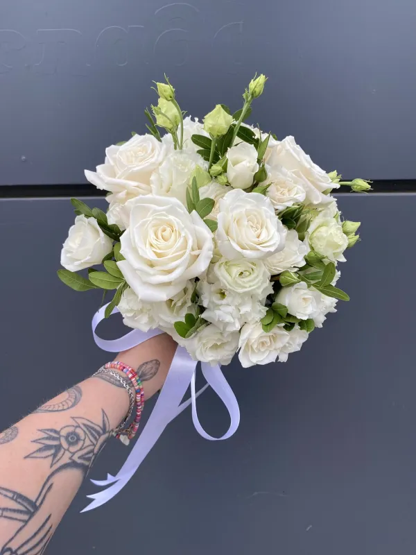 Свадебный букет невесты с эустомой и белыми розами №3